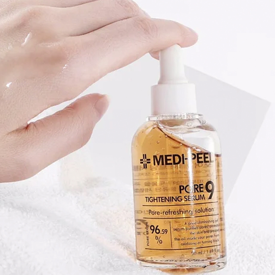 Антивозрастная сыворотка для сужения пор MEDI-PEEL Pore 9 Tightening Serum — сыворотка для разглаживания морщин и сужения пор одновременно. Это антивозрастная сыворотка, поэтому она уравновешивает потребности склонных к высыпаниям, но стареющих типов кожи, что является удивительно редким сектором ухода за кожей. Обычно приходится выбирать что-то одно из этого. Это одна из немногих сывороток, после использования которой вы заметите реальную разницу в яркости, чистоте и тоне кожи. Она сохраняет кожу сияющей, держа, легко закупориваемые, поры под контролем.