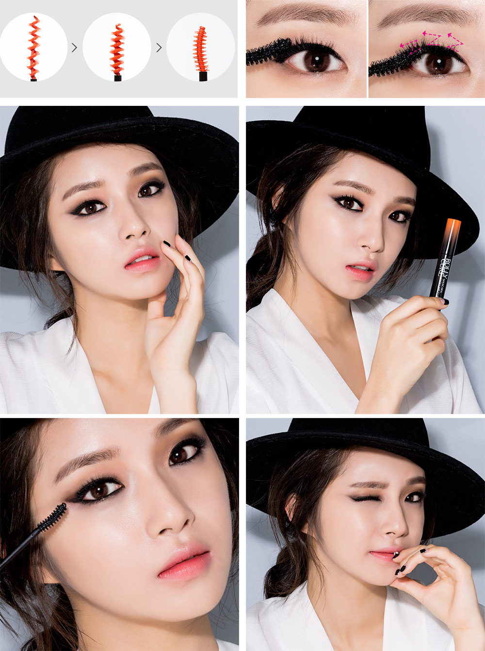 Первое место в нашем хит-параде занимает невероятная, потрясающая тушь для ресниц Missha Rolly Curl Mascara! Тушь представлена в двух вариантах: прямая розовая щеточка для создания изгиба, изогнутая оранжевая щеточка для невероятного объема. Текстура туши необычайно кремовая и очень хорошо распределяется по ресницам, буквально обволакивая каждую в отдельности. Силиконовые щеточки с легкостью разделяют реснички и буквально «раскладывают» их в желаемую форму.